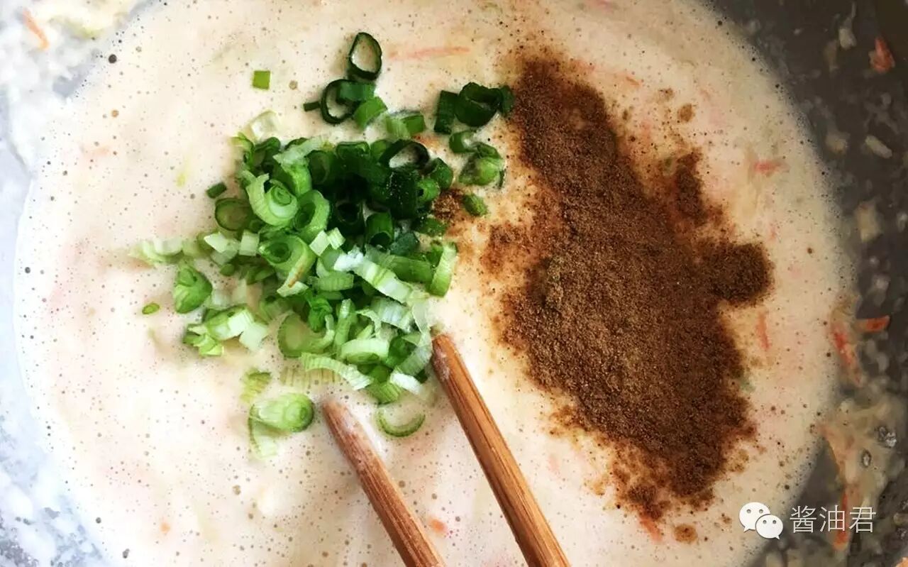 5.撒入葱花、盐、五香粉调味,搅拌均匀