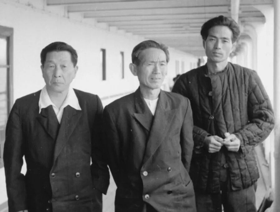 濑岛龙三(右一)在西伯利亚被苏联强制劳动11年后回到日本