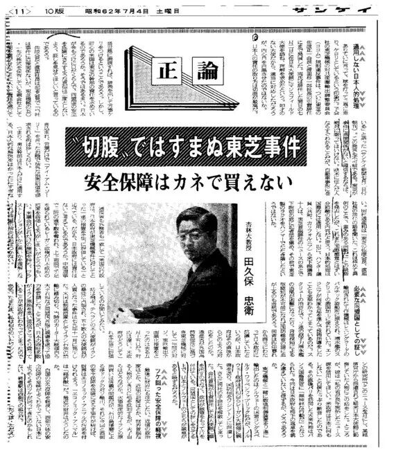 现在的许多人也许并不知道或者已经淡忘了在80年代曾经有一个让日本人花1亿日元在美国的50多家报纸上整版刊登“悔罪广告”的东芝事件。我去日本工作的时候正好这个事件还在余波荡漾之中,我的顶头上司部长又恰巧是这个事件的主角之——和光交易公司的前员工。