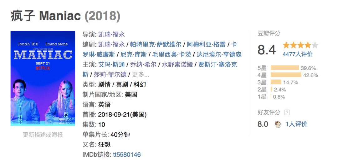 目前,这部剧在豆瓣的评分是8.4,烂番茄也有81%,基本算是新剧里的一个较好的水准。