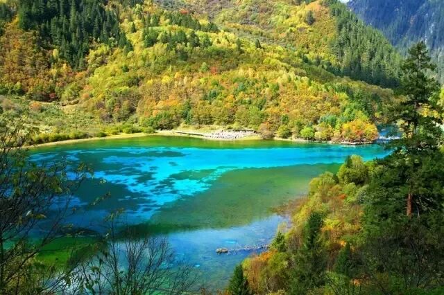 树叶除了绿色以外,还呈现出金黄、火红等色彩,五彩缤纷,倒映在明丽的湖水中。此时是观赏九寨六绝之“彩林”的最好时期。
