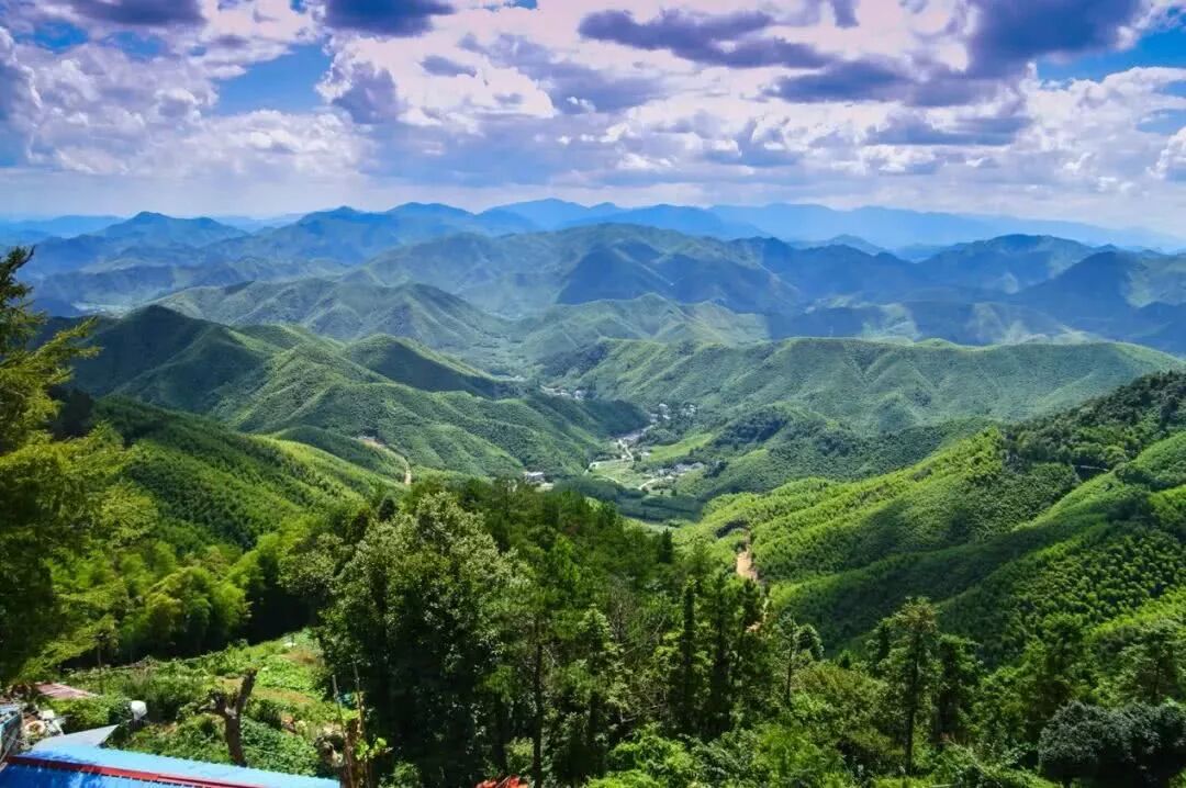 山颇峻峭,路途依山而转,弯曲多弯。竹海茫茫,人宛如置身绿云之上,给人一种凌虚蹈空之感。山沟处屋舍俨然,全部像极世外桃源。