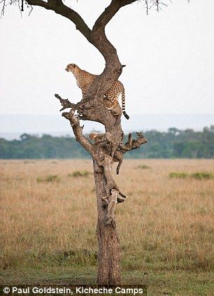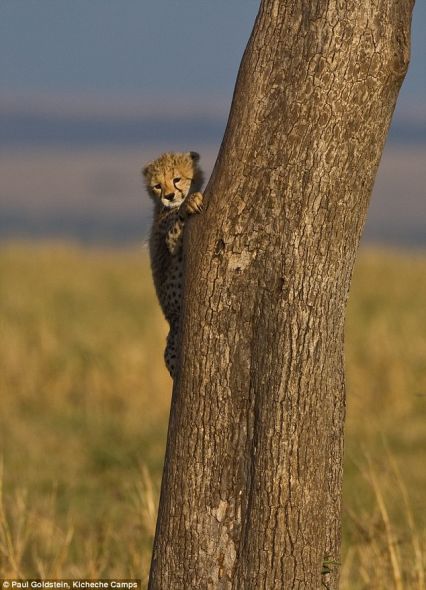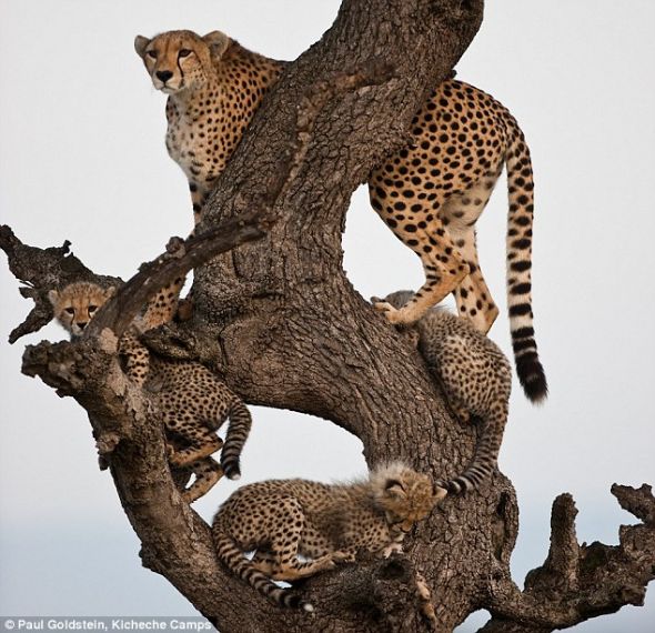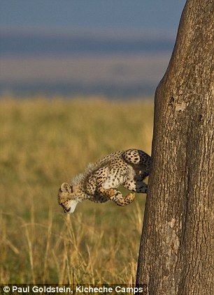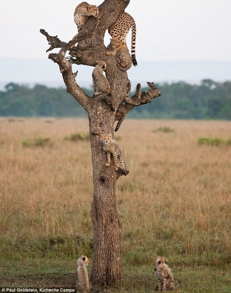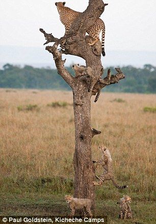 肯尼亚小猎豹跟随妈妈学习爬树 全家总动员 |