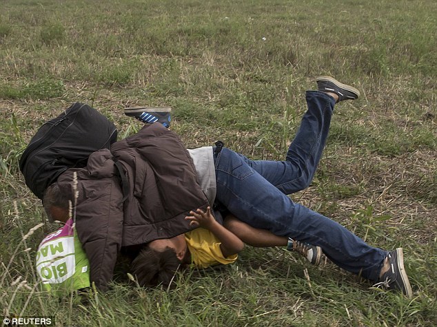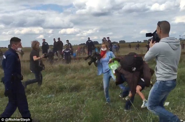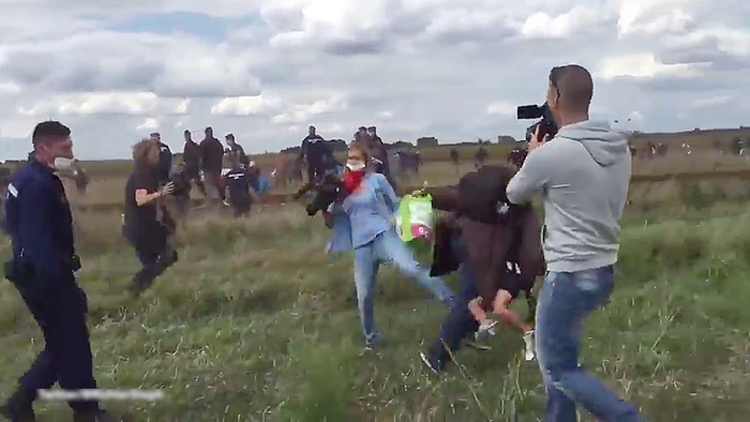 警察追捕抱孩子难民 女记者故意将难民绊倒 |