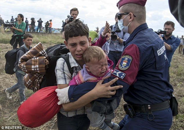警察追捕抱孩子难民 女记者故意将难民绊倒 |