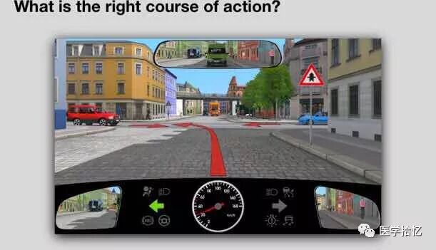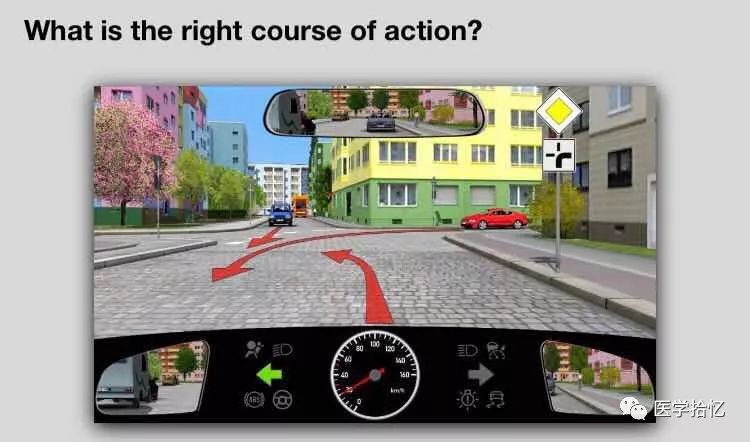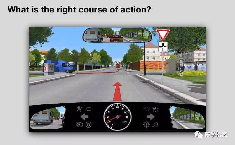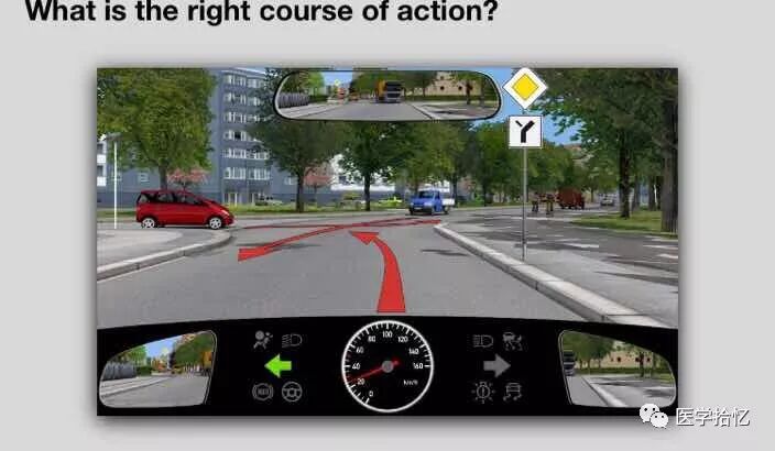 我们就模拟了一下,教练会在路上看后面没车的时候,突然喊一声, “Jetzt(现在)! ” 大步流星猛踩刹车。然而这并不是难点,难点是在惊吓过后,起步时依旧记得查看后方车辆以及打转向灯起步。