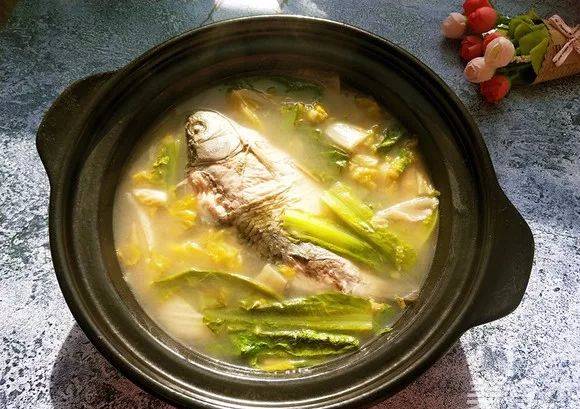 鲫鱼1条 / 酸菜200g / 料酒1勺鸡粉适量 / 盐适量 / 油麦菜1颗