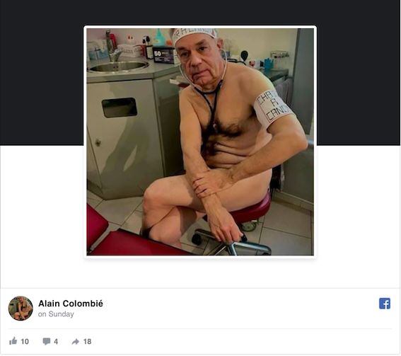 法国的感染人数和死亡人数不断上升。总理于周一宣布延长禁足时间,同时从周二开始严格限制体育运动:只能在居所1公里范围内每天一次,每次一小时。法国医生因为物资缺乏,发裸图抗议:我们就是这样赤膊上阵抵抗新冠病毒的!