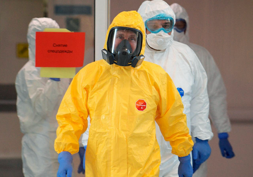 俄罗斯截止到周二上午,官方统计有438例感染。普金大帝身着鲜亮的黄色防护服隆重登场。