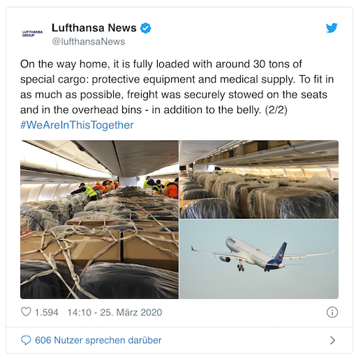 汉莎客机空客330变身货机从上海运送30吨防护设备