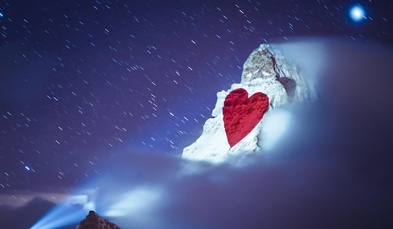 光影艺术家Gerry Hofstetter周四晚上在瑞士Matterhorn投影出一颗大大的红心,向饱受新冠病毒折磨的高山村庄Zermatt的人们传达希望,支持和团结的信号。