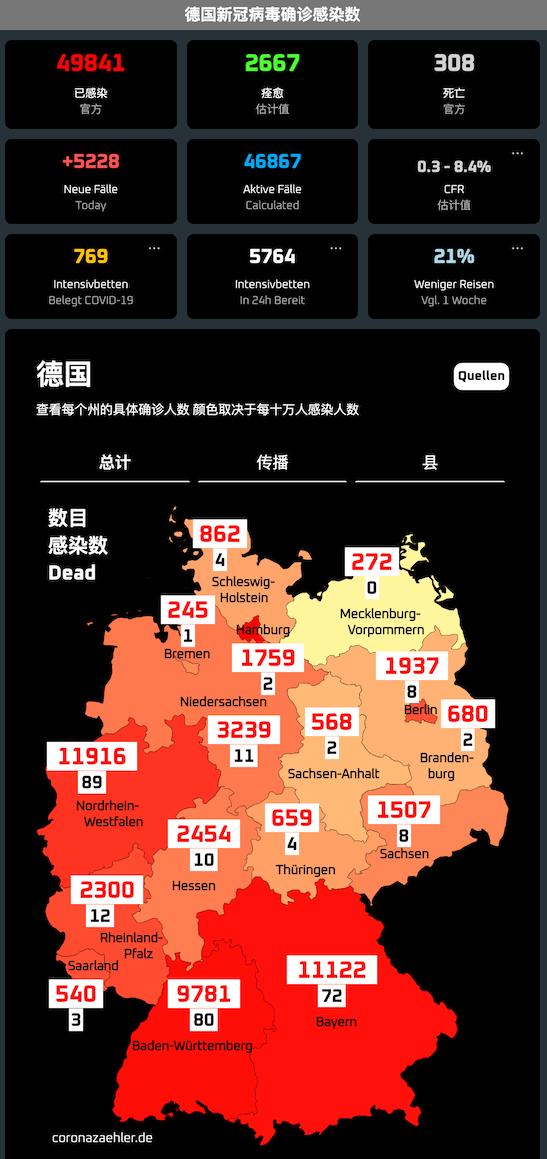 • 柏林一个晚上新增了4名死亡,近2000名感染者中目前已有8人死亡