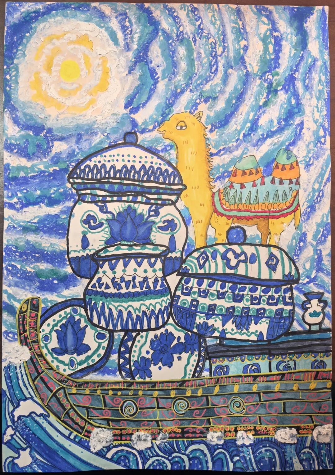 《青花映瀚海星河照驼行》