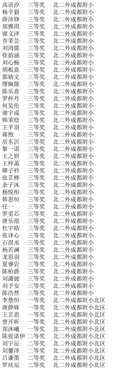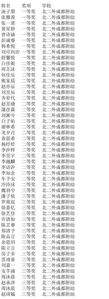获奖学生名单公示