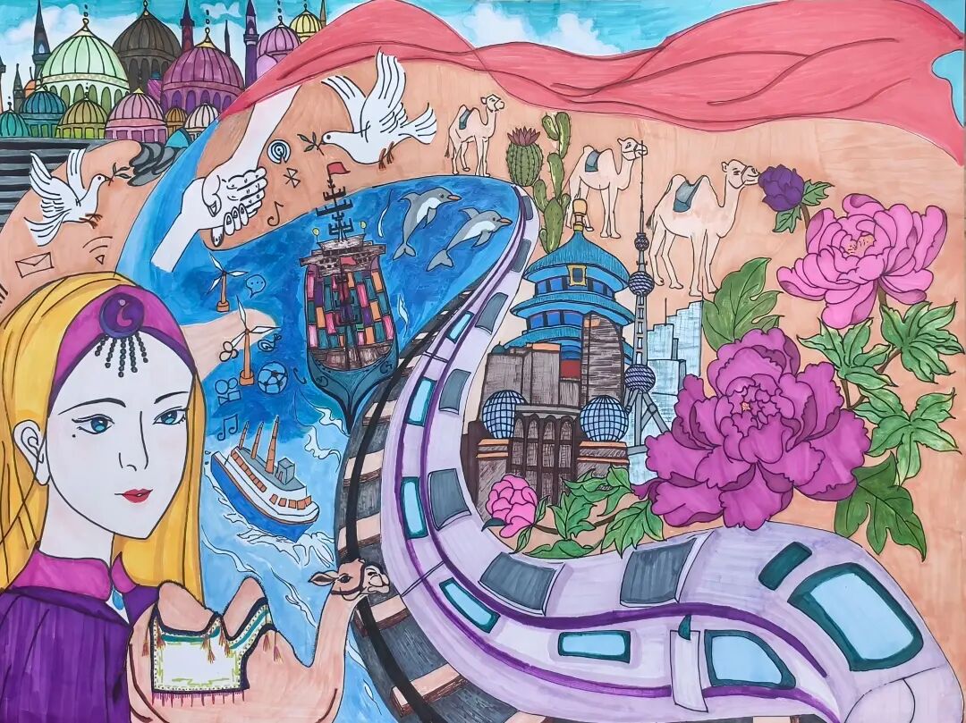 本次活动共收到来自“一带一路”共建国家青少年的精彩作品749幅。各国少年们生动描绘了跨越山海的文化共鸣与情感纽带。作品或展现对彼此传统的欣赏,或表达对共同未来的思考,深刻诠释了“基础设施‘硬联通’、规则标准‘软联通’、人民之间‘心联通’”的时代内涵。此次展览成功在各国青少年心中架起了一座友谊与理解的桥梁,用艺术的光芒共同编织出一个情感相连、命运与共的灿烂明天。