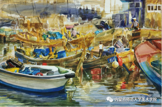 刘亚萍《港湾物语》水彩90x110cm 2020年Лю Япин. «Рассказы о гавани». Акварель. 90х110 см. 2020.