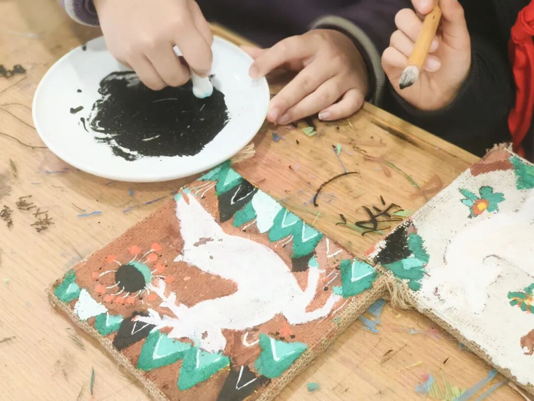 褪去浮华的泥板肌理,搭配稚拙却传神的花草图案,古韵与童真在此相拥,既展现了传统工艺与本土资源的创造性转化,更实现了东方美学精神与西方艺术技法的和谐共生。