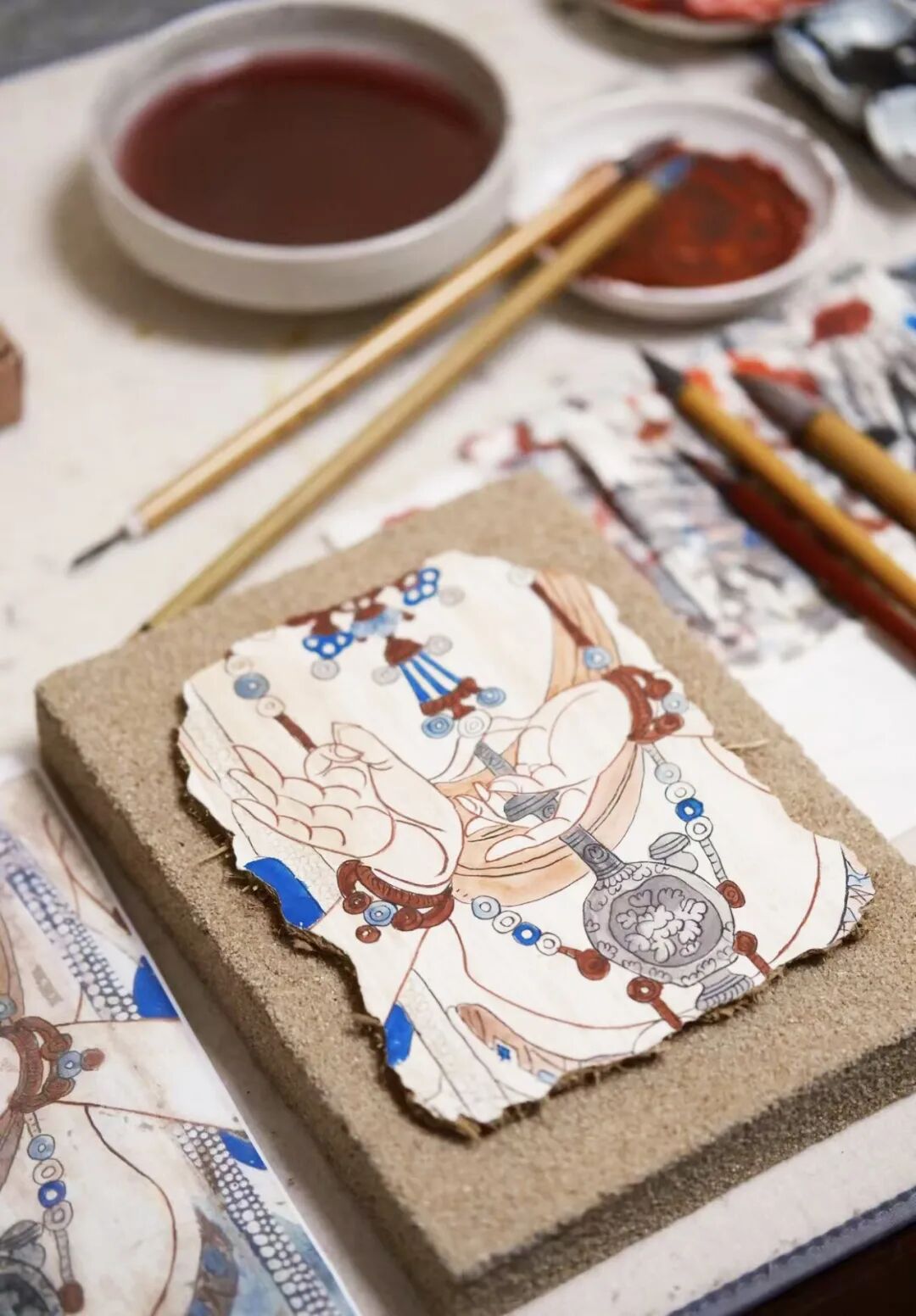 敦煌花草纹样泥板壁画创作