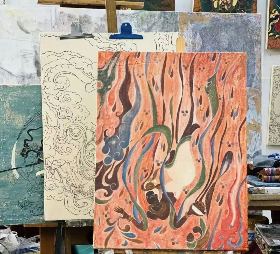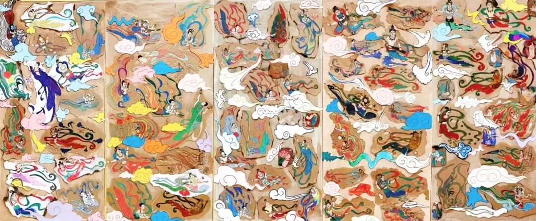 The fusion of traditional mounting techniques with contemporary installation art has enabled millennia-old flying apsaras to transcend temporal barriers. Imbued with the splendour and mystique of the Dunhuang caves, these figures have been reborn through the youthful brushstrokes, radiating renewed vitality. This collection of works is not merely an artistic presentation; it embodies the principle of ‘people-to-people connectivity’ within the Belt and Road Initiative. Through cultural exchange, it builds bridges of the heart, allowing the seeds of ‘Developing in Harmony where East meets West’ to take root and flourish within the children's minds.