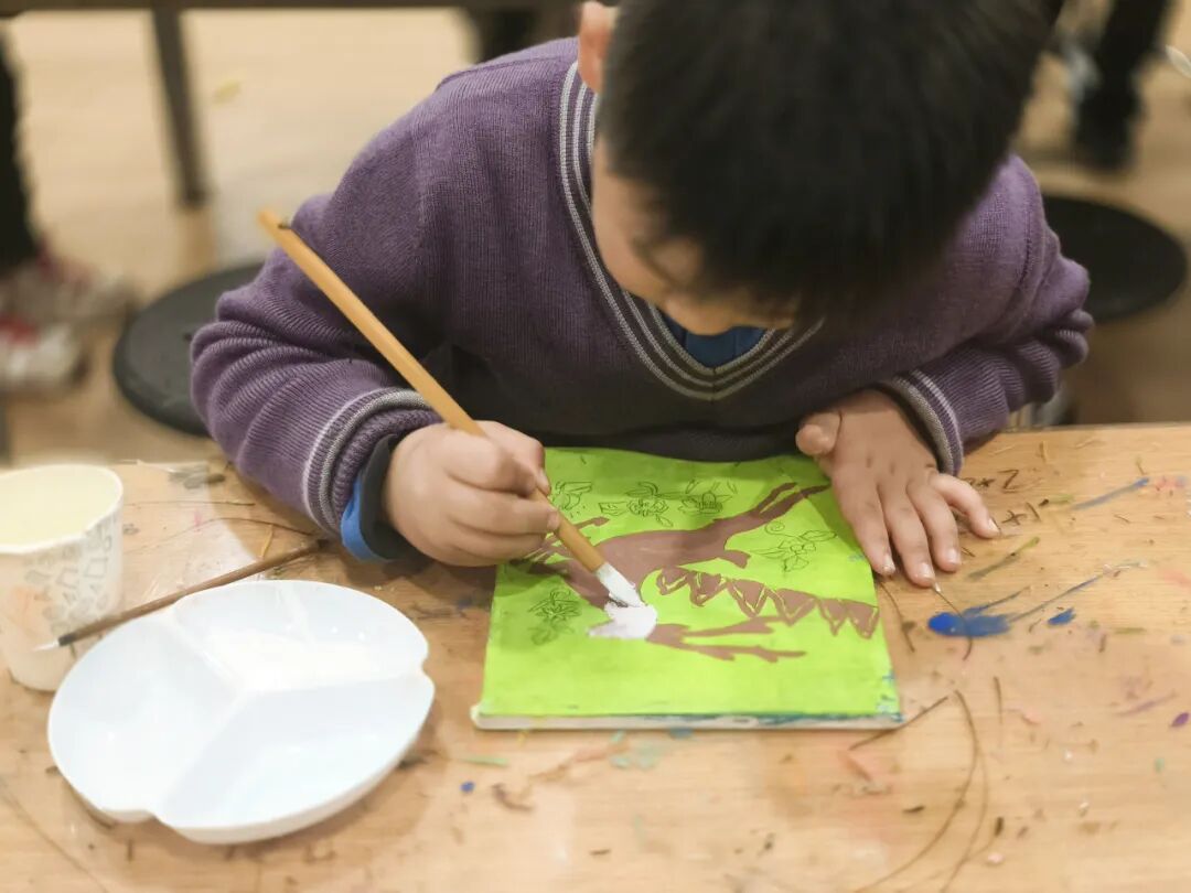 The children's creations “The Golden Age of Chang'an” and “Map of Zhang Qian's Mission to the Western Regions”, produced through P2E and P2G initiatives, added a splendid flourish to this cultural tribute. The bustling streets of Chang'an and the majestic camel caravans across the Gobi Desert—these two works resonate in harmony, weaving together the cultural threads of the Silk Road from its origins to distant lands. Through geographical route exploration, historical narrative tracing, and artistic creative expression, children embark upon a journey of discovery, using their paintbrushes as vessels to retrace the pioneering paths of the ancient Silk Road. They thus experience the profound legacy of this “Road of Friendship” and “Road of Prosperity”. In their creative process, the children draw upon the rigorous composition of traditional Chinese architectural painting while incorporating the free-flowing brushwork characteristic of Western children's art, resulting in works that harmoniously blend historical depth with childlike vitality. This exemplifies the school's educational philosophy of ‘Developing in Harmony where East meets West,’ while also resonating with the Belt and Road Initiative's commitment to both honouring and transcending the spirit of the ancient Silk Road. From historical trade and cultural exchanges to contemporary policy coordination, infrastructure connectivity, unimpeded trade, financial integration, and people-to-people bonds, the Silk Road ethos continues to evolve with fresh significance in the modern era.