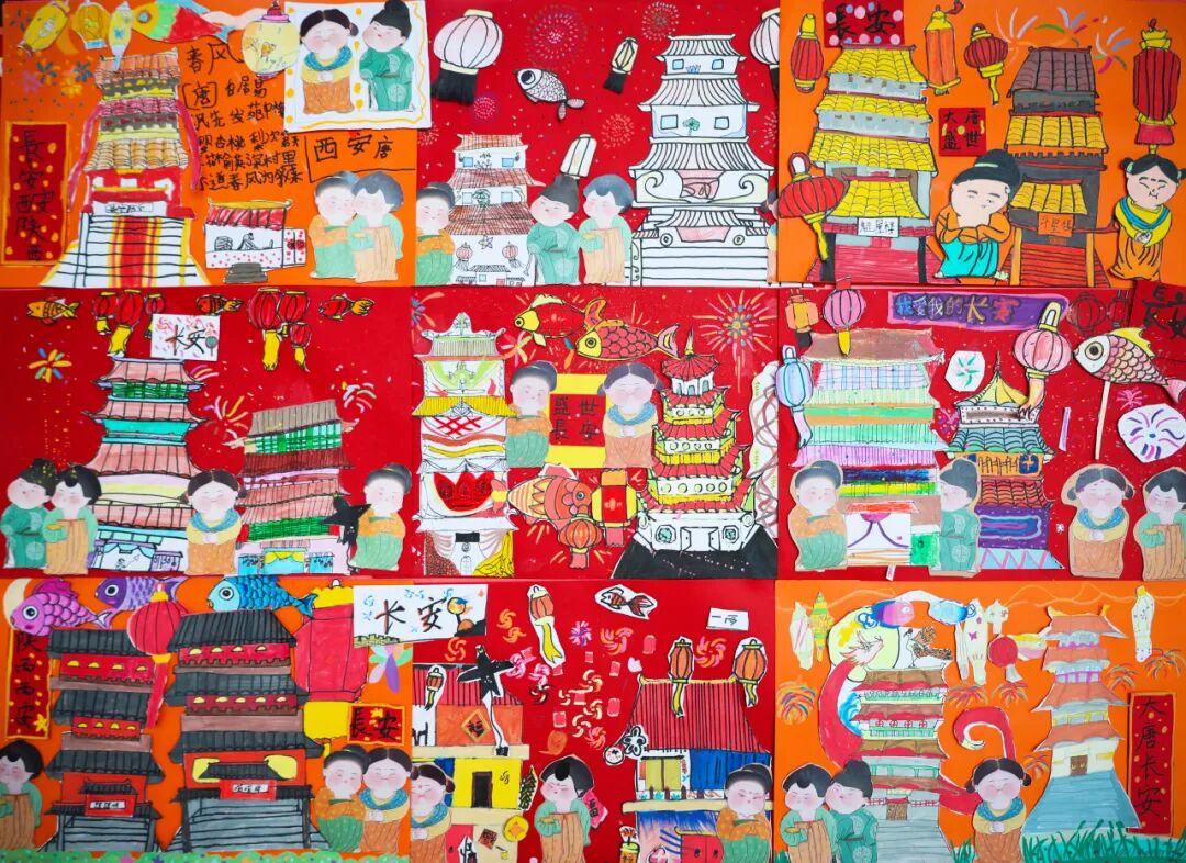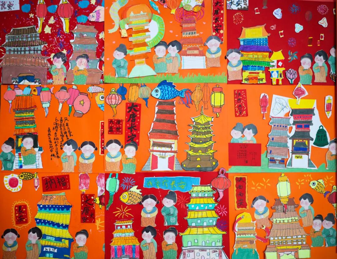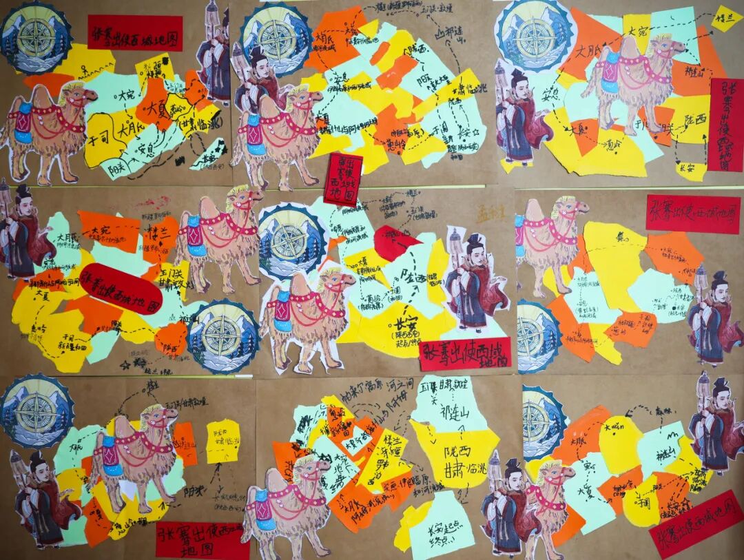 P2E与P2G小朋友们创作的《盛世长安》与《张骞出使西域地图》,则为这场文化致敬添上了浓墨重彩的一笔。繁华的长安市井、浩荡的戈壁驼队,两幅作品遥相呼应,串起丝绸之路从起点到远方的文化脉络。地理学科的路线探究、历史学科的故事溯源、美术学科的创意表达,让孩子们以画笔为舟,重走“凿空之旅”,感受古丝路“亲善之路”“繁荣之路”的深厚底蕴。创作中,孩子们既汲取中国传统界画的严谨构图,又借鉴西方儿童绘画的自由笔触,让作品兼具历史的厚重与童真的灵动。这恰是“融合中西 和谐发展”办学理念的生动实践,也呼应了“一带一路”倡议对古丝路精神的继承与超越——从古代的经贸往来、文化交流,到如今的政策沟通、设施联通、贸易畅通、资金融通、民心相通,丝路精神在新时代不断焕发新的内涵。